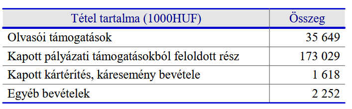 A megadott adatok szerint, az olvasói támogatások összege 35 millió forint volt, ami 7 millió forinttal kevesebb, mint egy évvel korábban.2